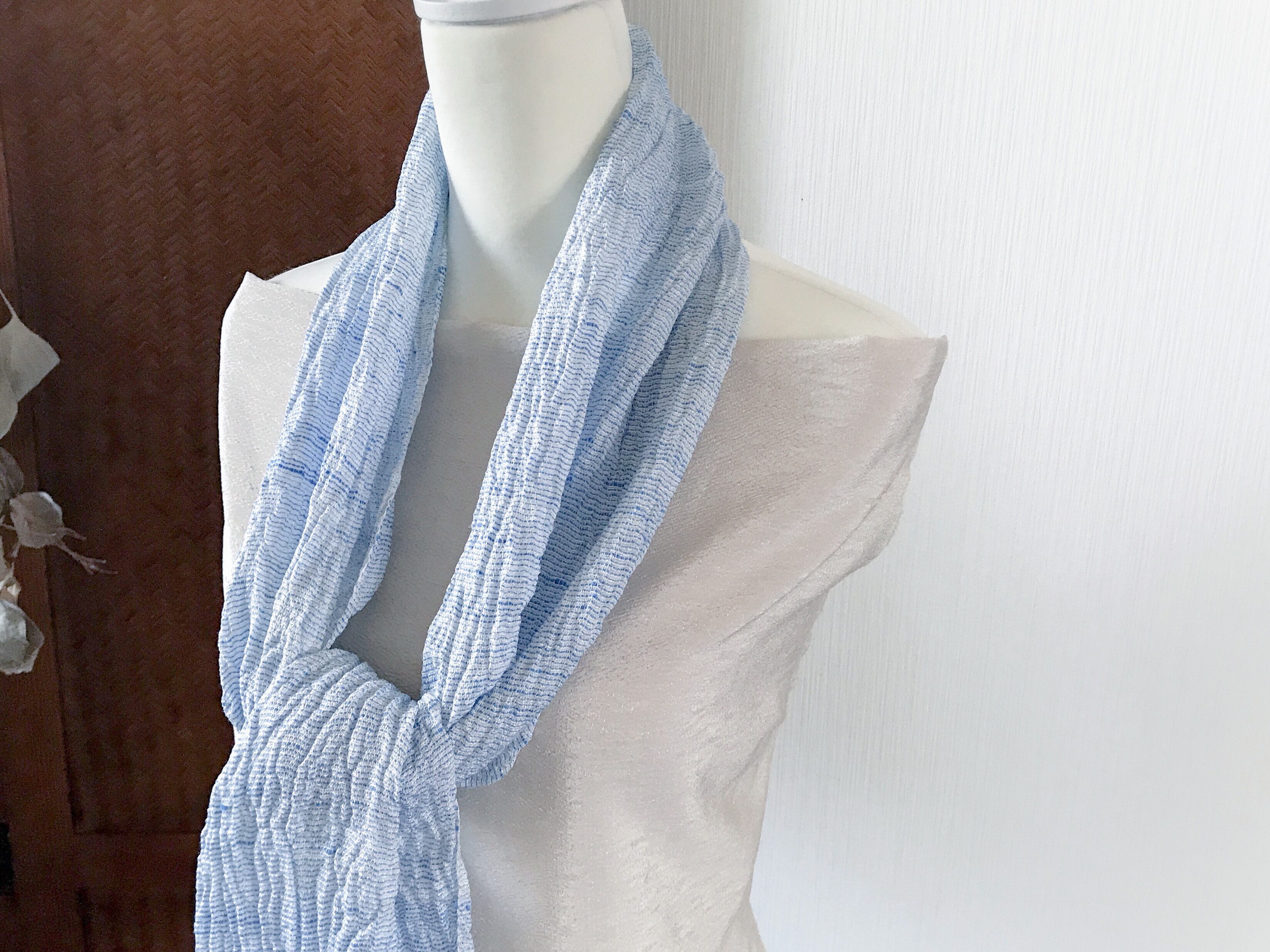 ✤再入荷✤ silk100%:京都丹後の織りストール:水色