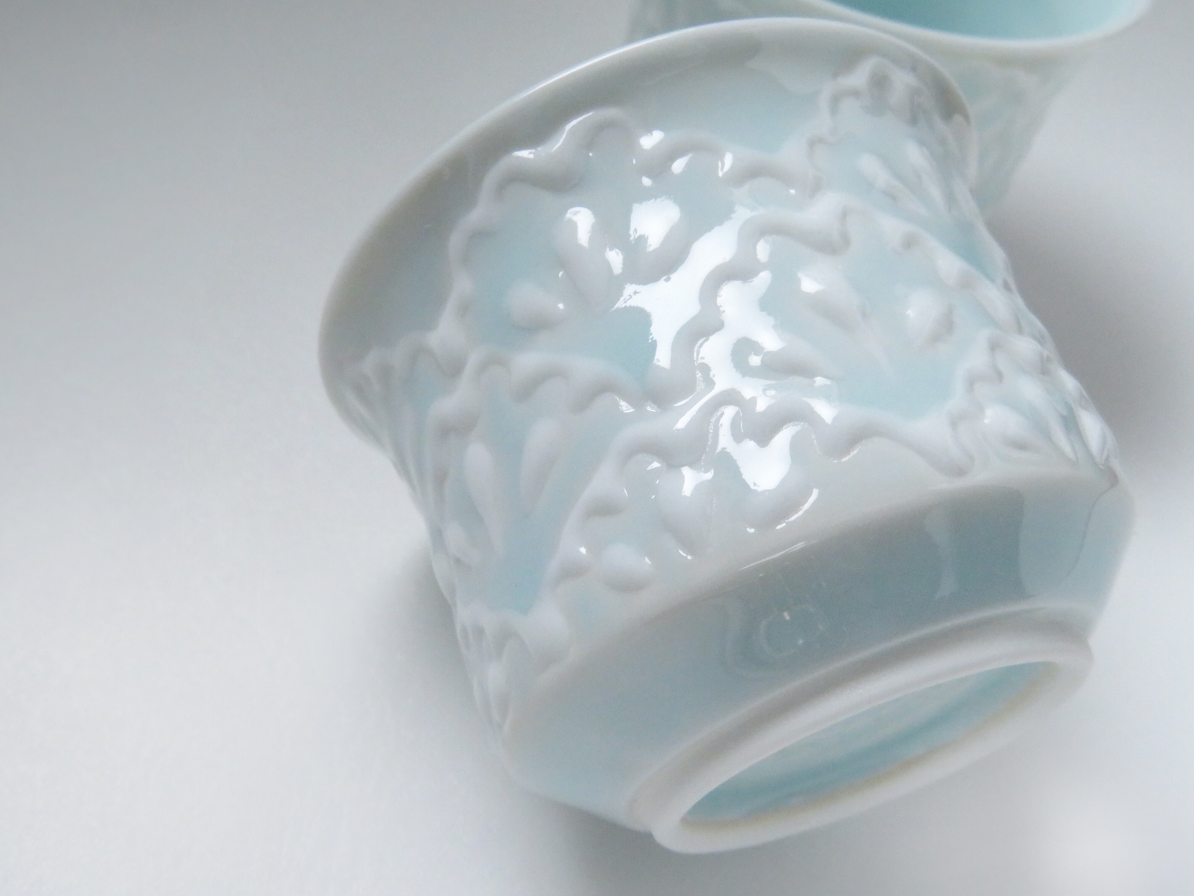:有田焼 青磁牡丹のお猪口: