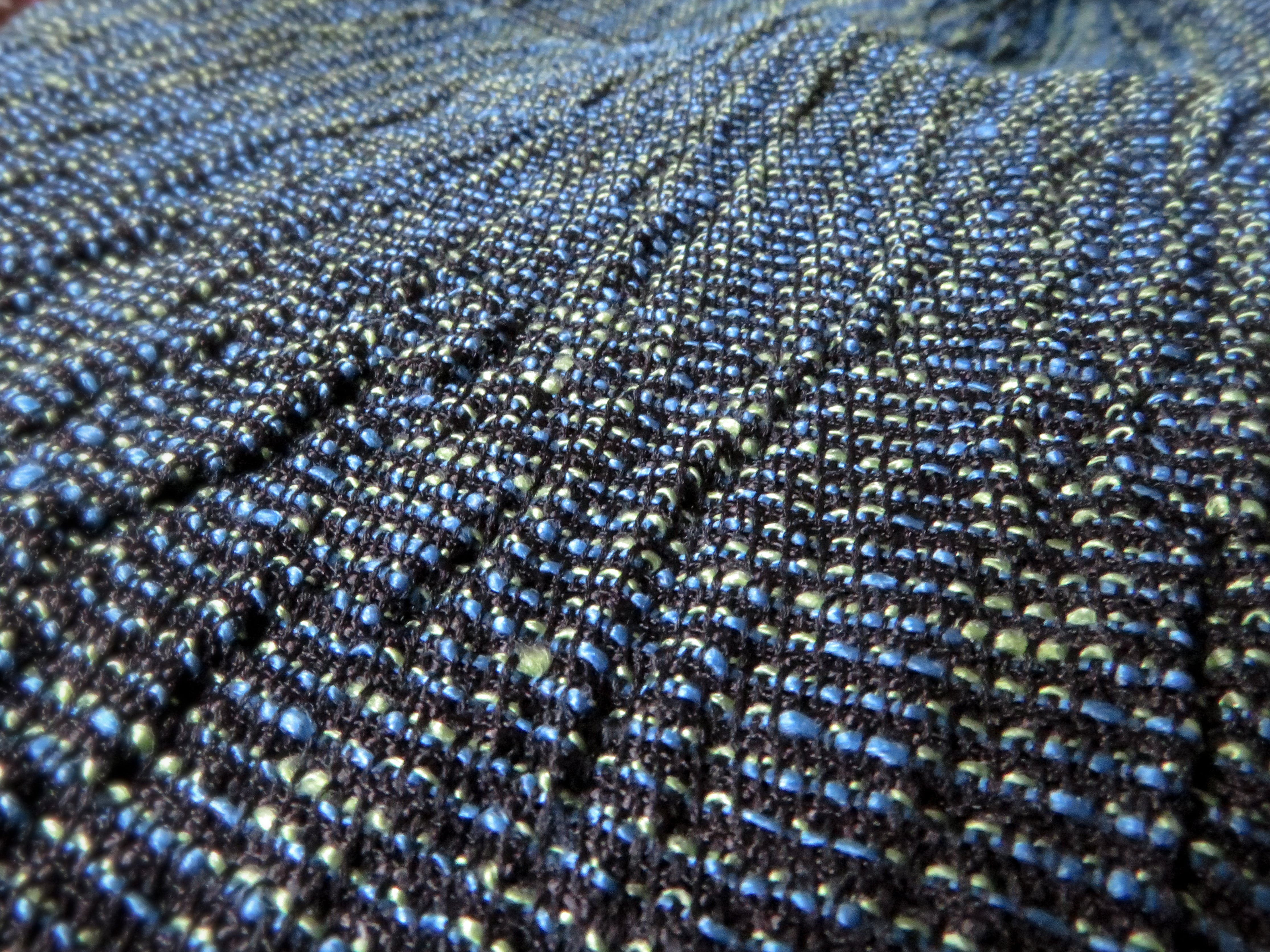 こちらはよこ糸にブルーと黄緑色が使用されています。
